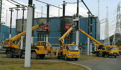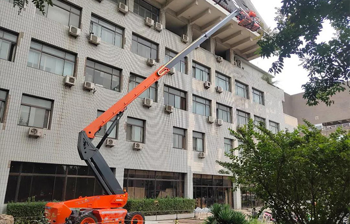 伸縮臂高空車載人高空作業(yè)現(xiàn)場