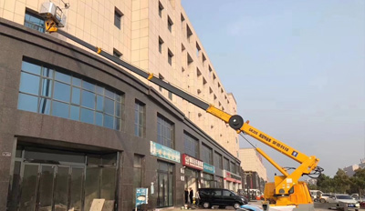 17.5米伸縮臂登高車酒店開業(yè)外墻高空作…
